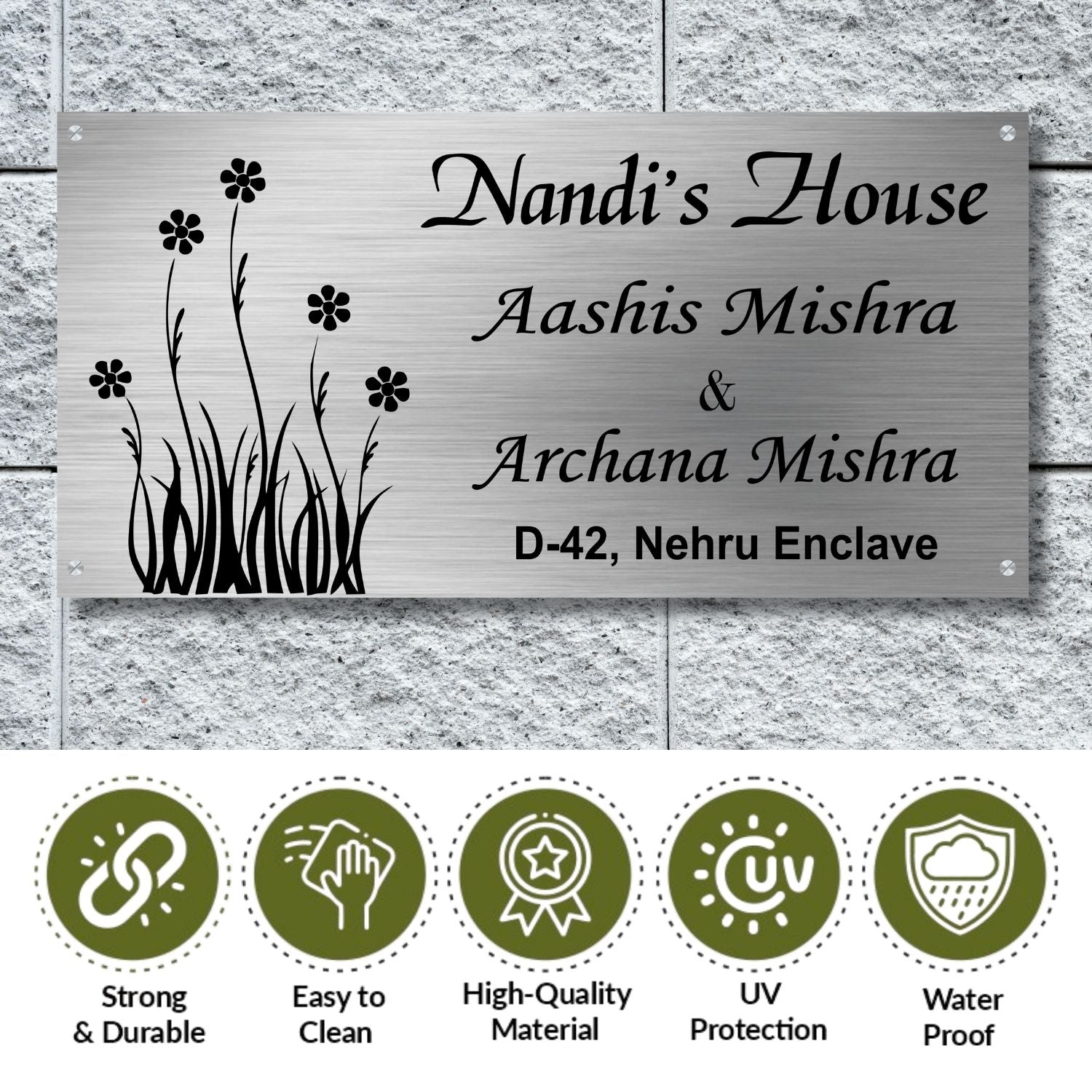 Premium Stainless Steel Design : Crafted from high-quality stainless steel, this name plate ensures durability, weather resistance, and long-lasting shine, perfect for indoor and outdoor use.