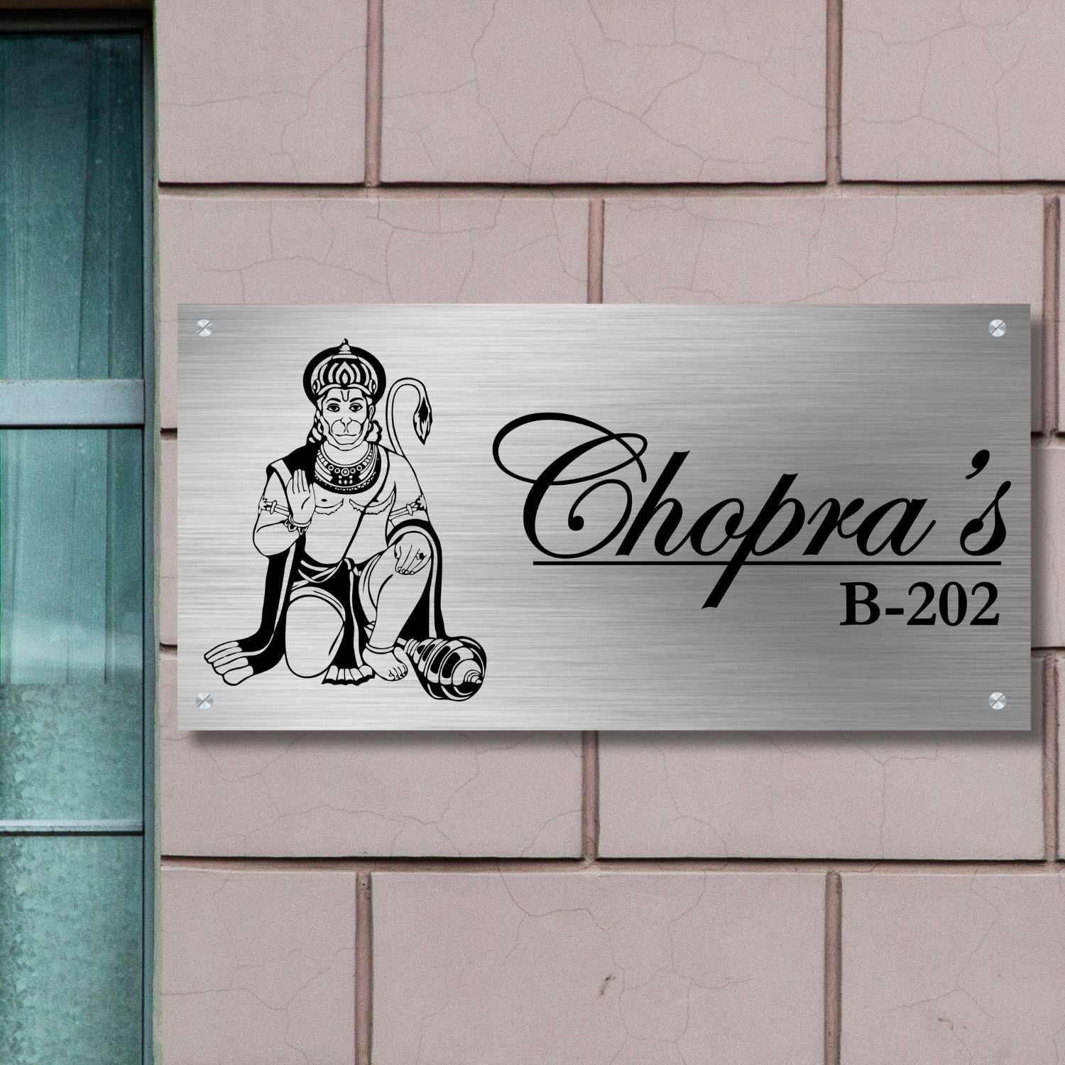 Lord Hanuman Stainless Steel Nameplate for Home office Outdoor Entrance